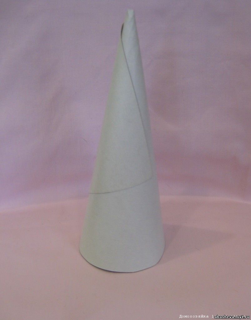 На верхний угол листа наносим клей и соединяем его с конусом.